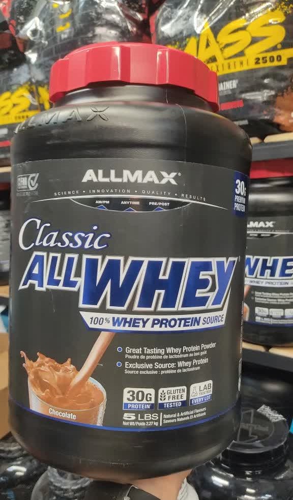 پروتئین allmax هیچ منبع پروتئین دیگری مانند سویا یا گوشت گاو ندارد. فاقد آمینوهای غیر پروتئینی و بدونه کاربرد است. مقدار پروتئین ذکر شده یک پروتئین واقعی است! AllWhey یک کنسانتره پروتئین وی ممتاز برای کمک به بازسازی عضلات شما پس از تمرین شدید ارائه می دهد. تحقیقات نشان می دهد که سطوح بالاتر پروتئین بعد از تمرین به عضلات کمک می کند تا سریعتر بهبود یابند.